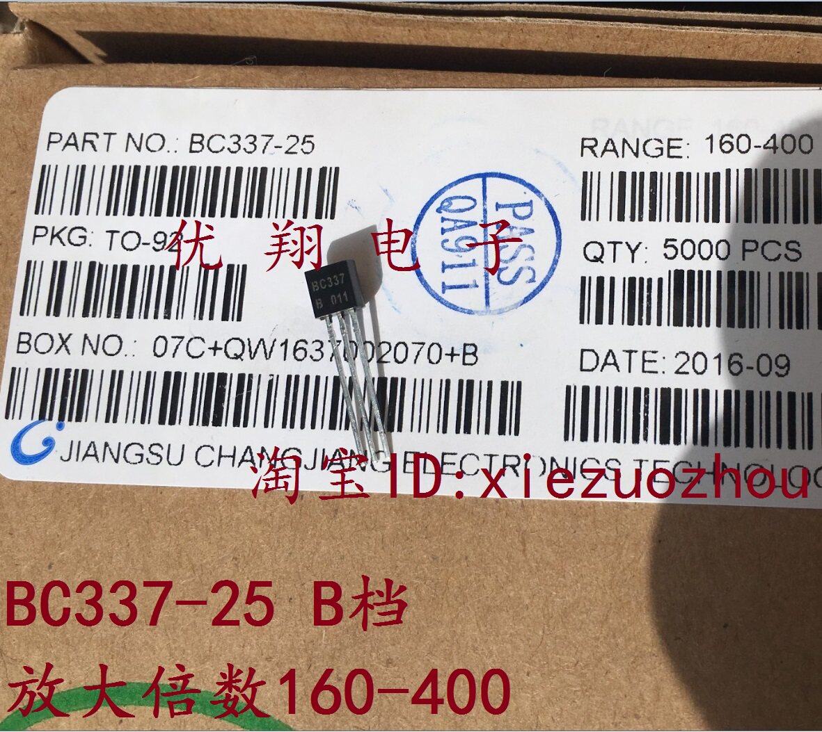Чандианский технологический агент Pipe BC337-25 B Подличный пакет TO-92 100 = 9 Юань