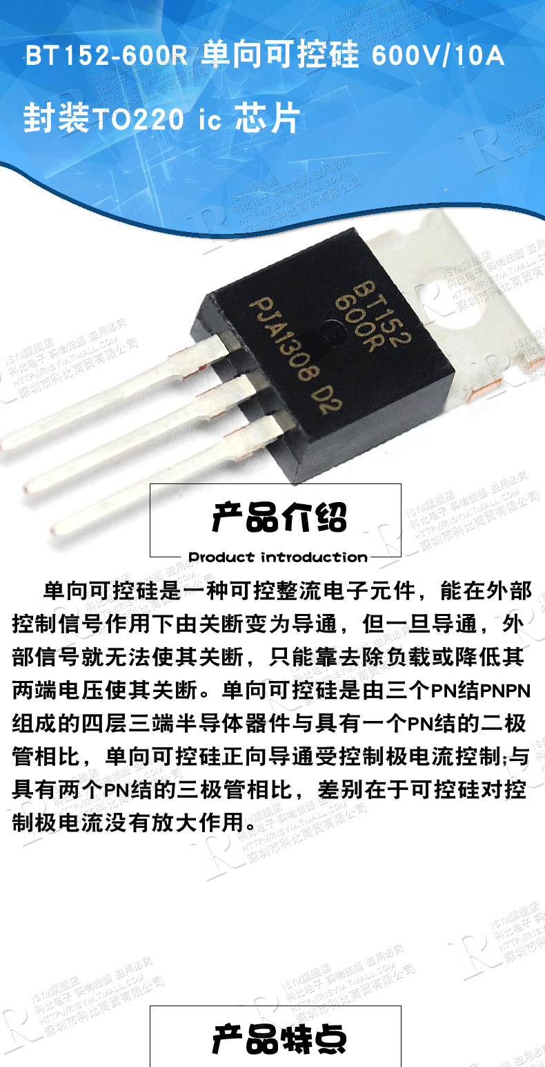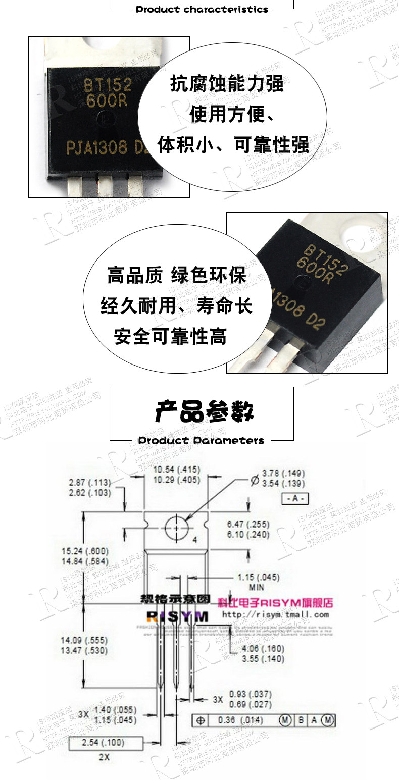 Risym BT152-600R Однонаправленное плавание 600 В/10A до 220 IC Chip (2)