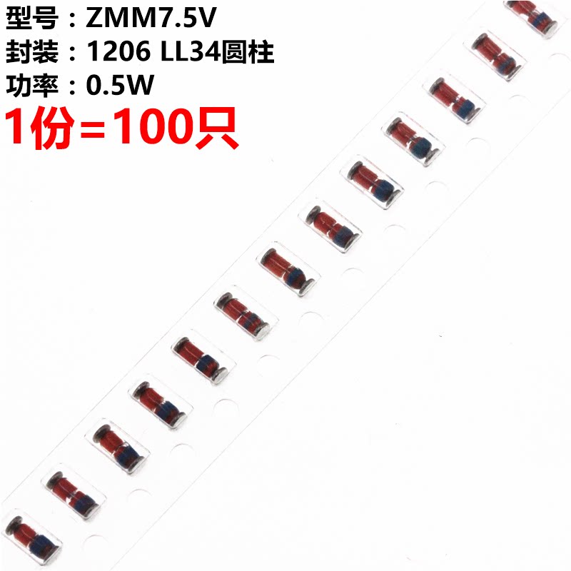 Arthyly 100 штук 0,5 Вт 1/2 Вт регулятор напряжения zmm Patch Diode 7,5 В 1206