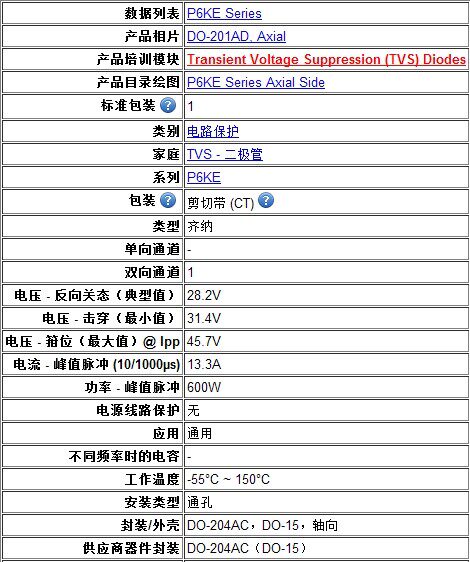 Информация о продукте документ PDF (только для справки) http://media.digikey.com/pdf/data%20sheets/1%20Semiconductors/p6ke6.8a_-540a.pdf