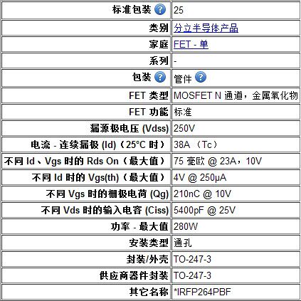 Arthyly Irfp264 Полевая трубка эффекта до-3p прямой вставка