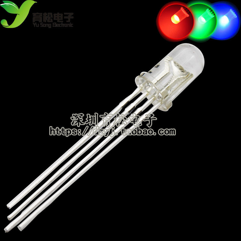 Туман -Гонгин с четырьмя разбитыми 5 мм с полным -колорным светодиодным светодиодом, управляемыми красочными светло -красными, зелеными синими тремя тройными полноцветными RGB