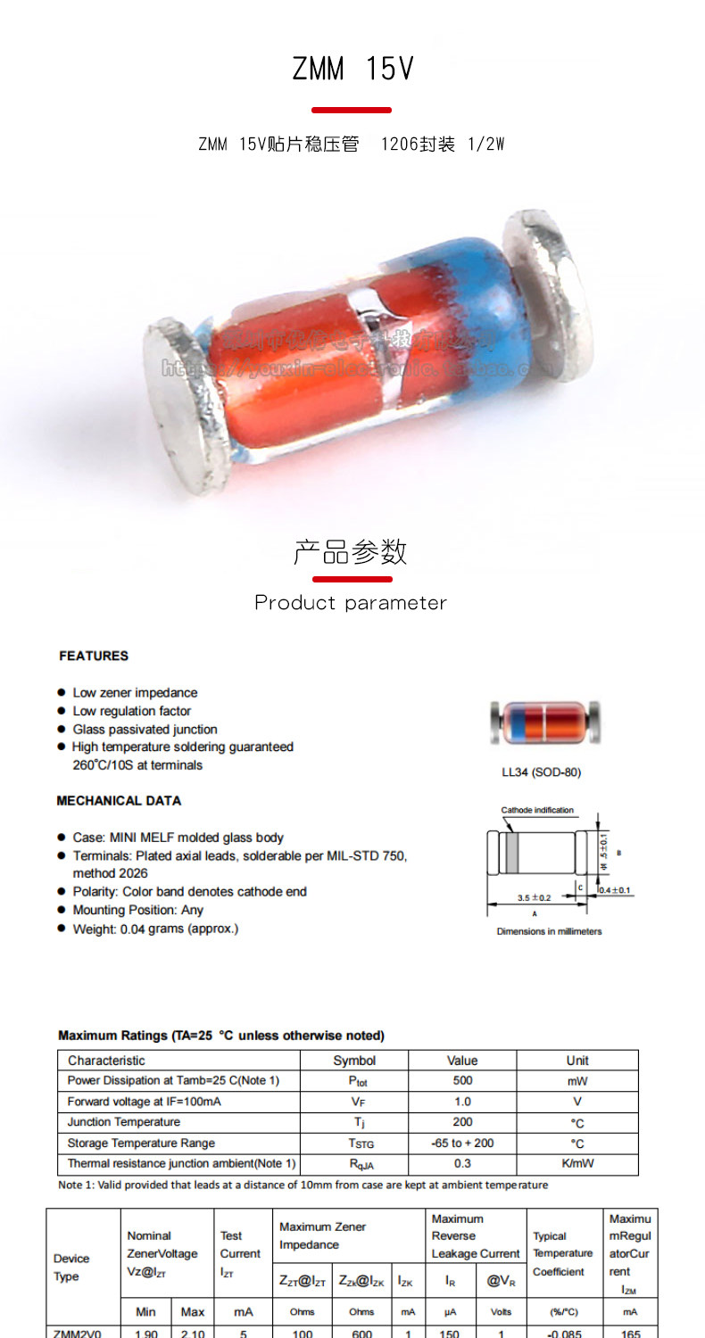 ZMM 15V Patch State напряжение объем 1206 Пакет 1/2W LL-34 (50)