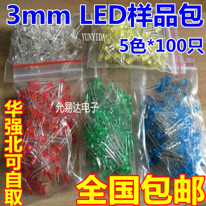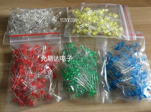 Светодиодные светодиодные светодиоды F3MM, красный, желтый, зеленый, синий и белый 5 цветов, 500 пакетов для образцов