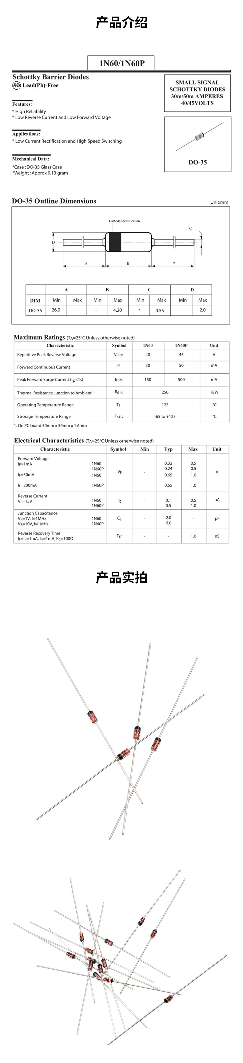 Диод обнаружения Шоттки 1N60p 锗 Диод 1N60 может заменить 2AP9 DO-35
