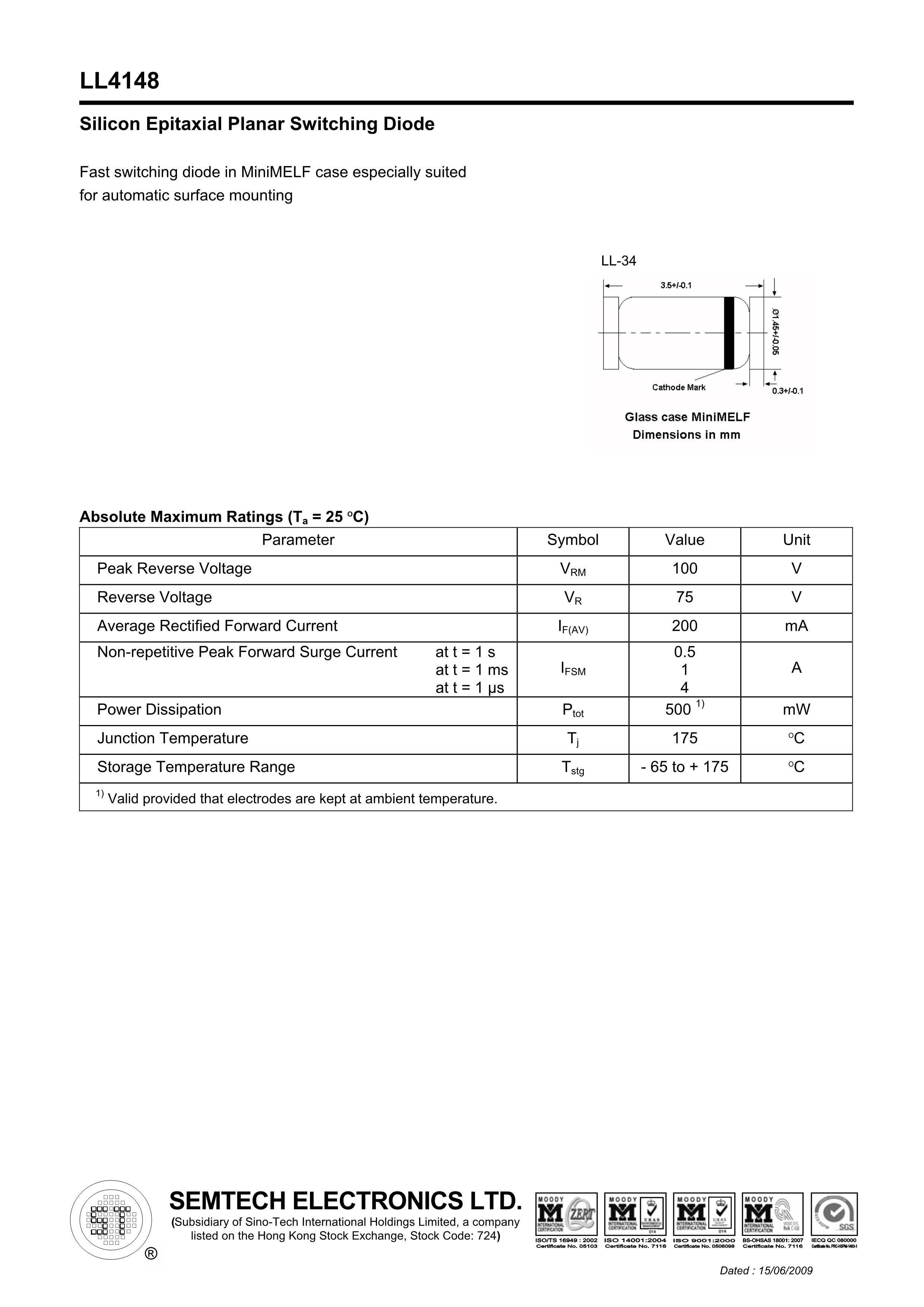 Оригинальный подлинный LL4148 LL-34 75V/200MA 1206 Пластырь Пластырь 20 Диоды Терранты