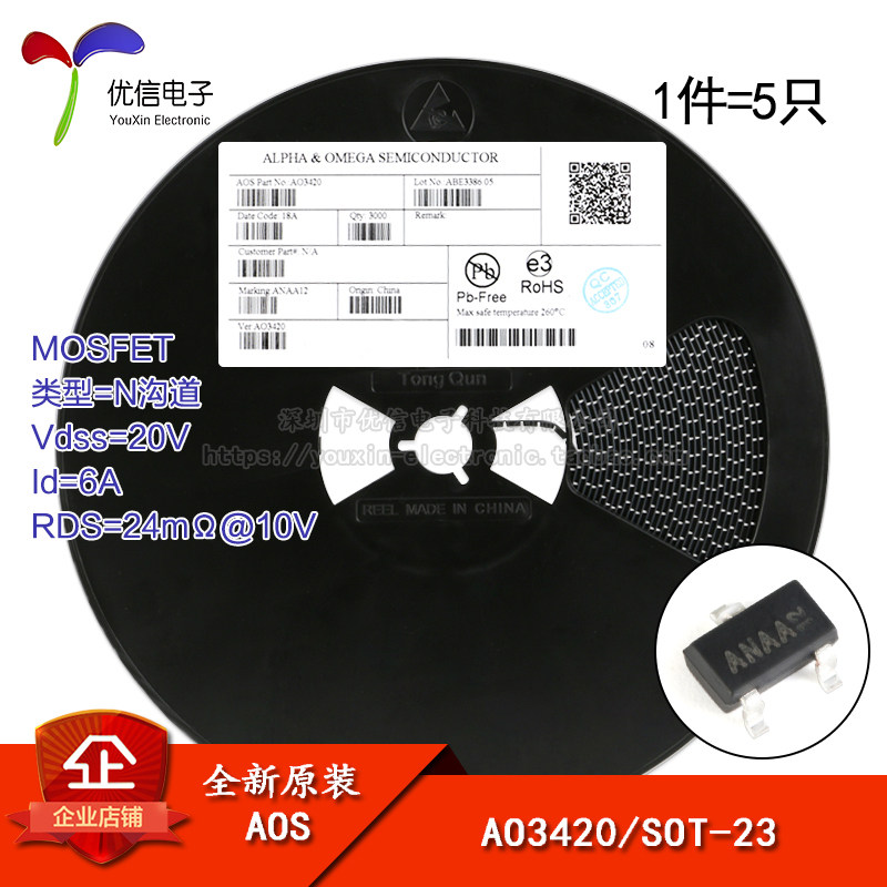 Оригинальный аутентичный AO3420 SOT-23 N настройка 20 В/6A патч Mosfet Field Tube 5