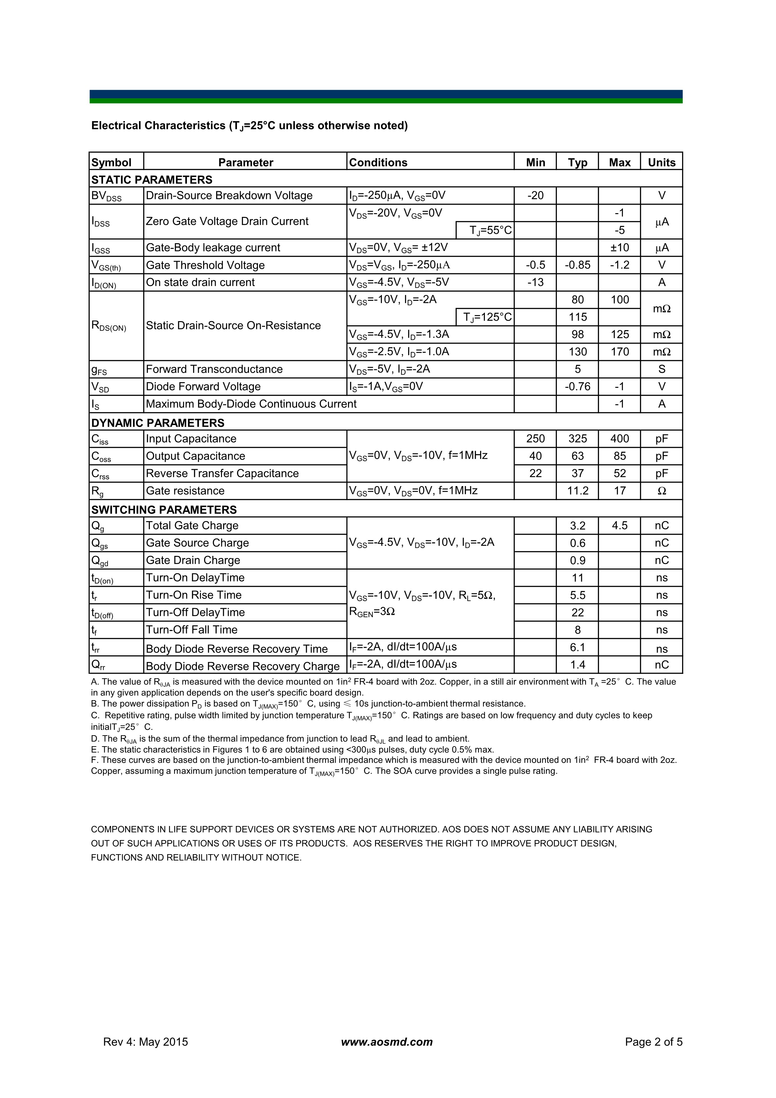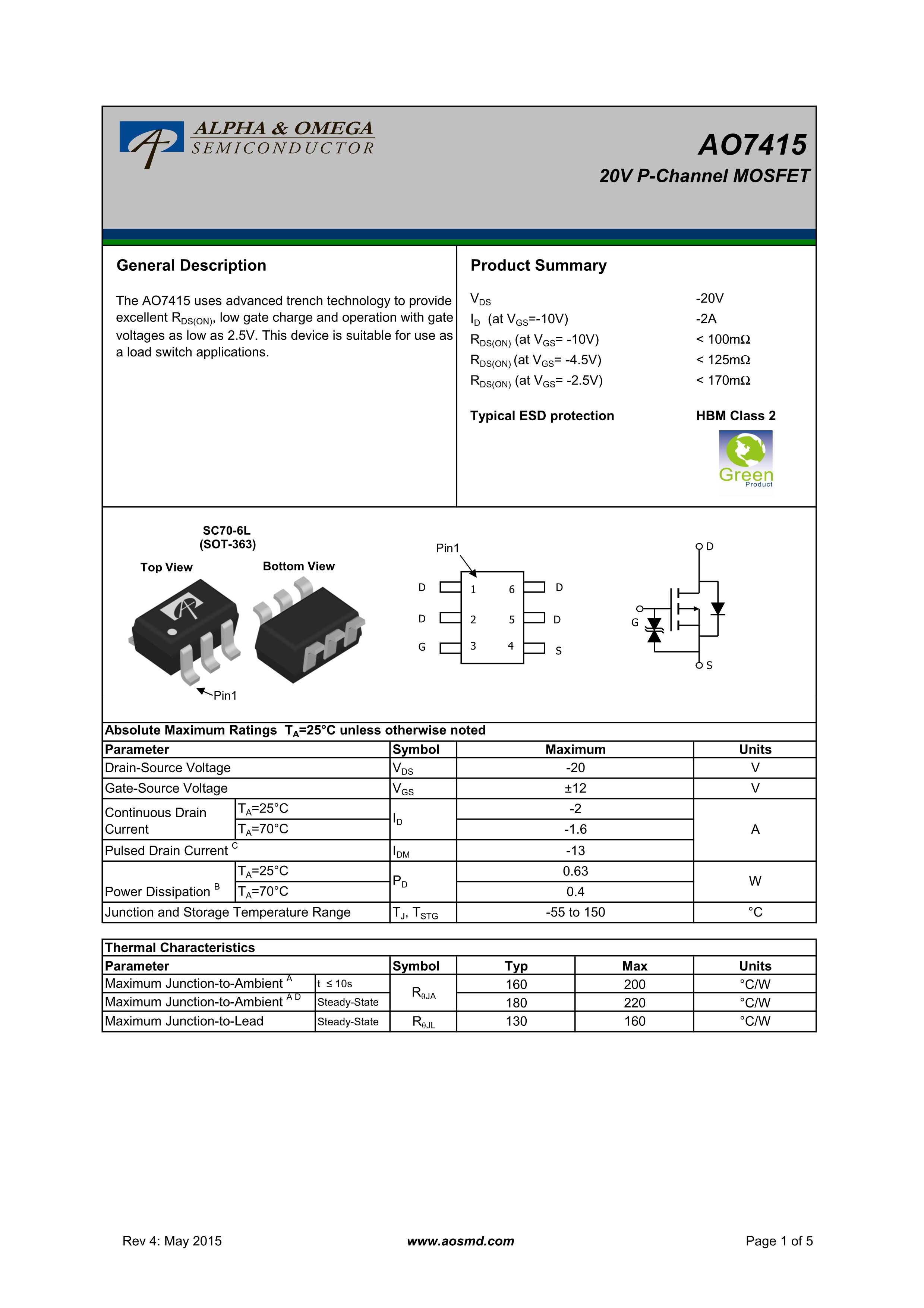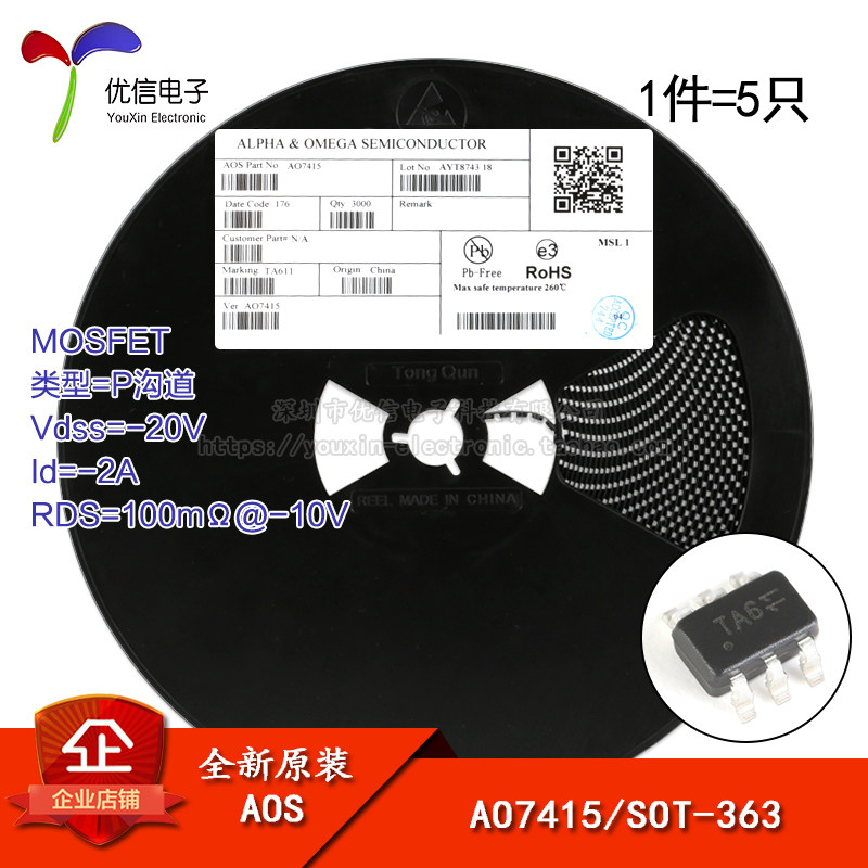 Оригинальный аутентичный AO7415 Silk Print SOT-363 P-канал -20V/-2A MOSFET