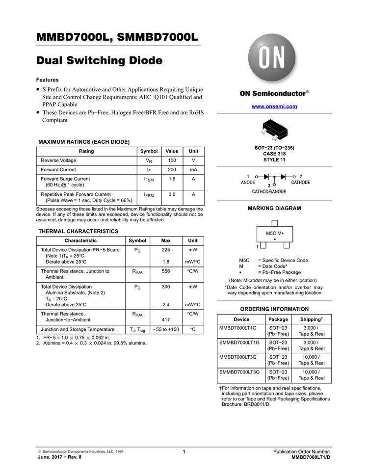 Оригинальный MMBD7000LT1G Silk Print M5C SOT-23 100 В/200 мА ПУТЬ ПУТЬ ДИБОД