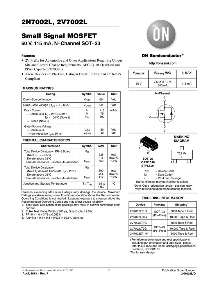 Оригинальный аутентичный 2N7002LT1G SOT-23 N-канал 60 В/115 мА