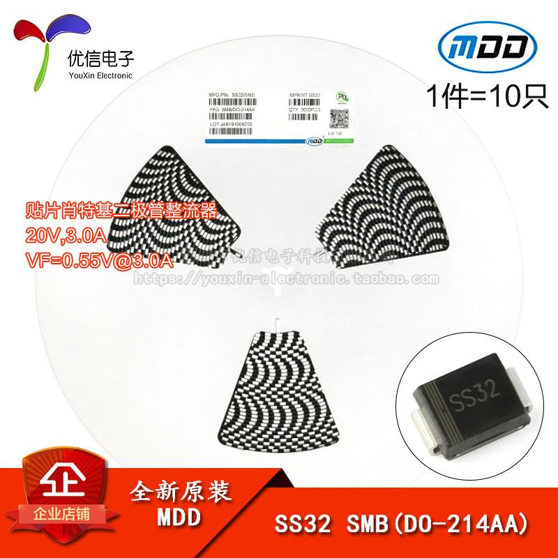 Оригинальный подлинный SS32 SMB (DO-214AA) 20V/3A патч Schottky Diodes 10