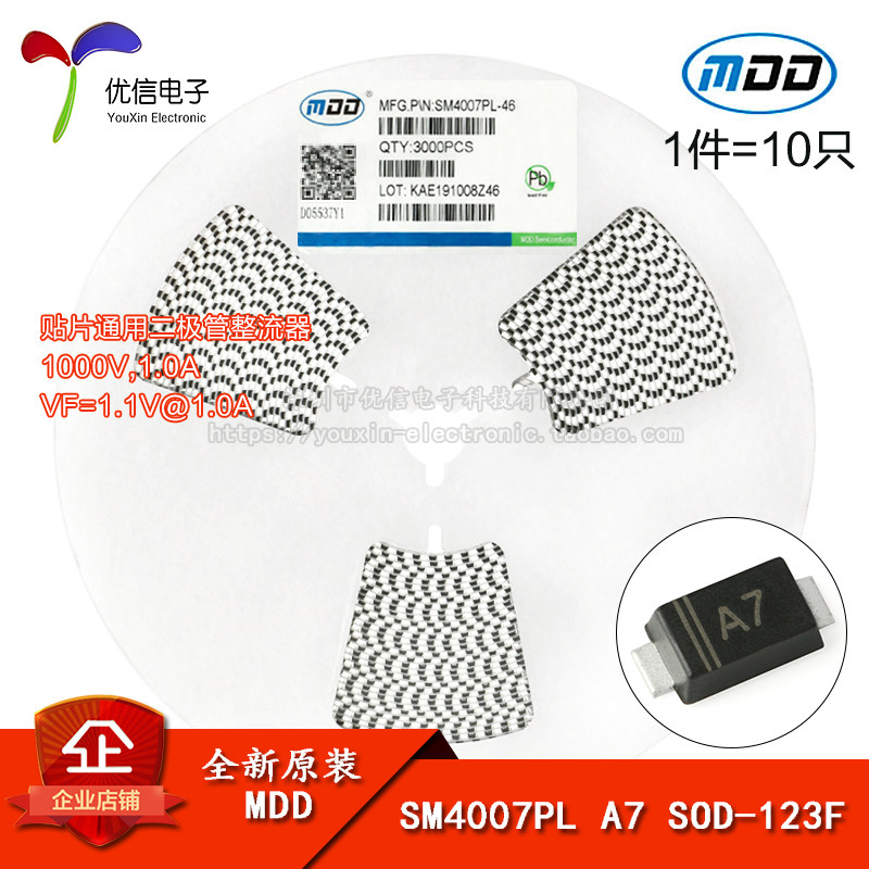 Оригинальный MDD SM4007PL A7 SOD-123F 1000V/1A Плач общие диоды выпрямитель