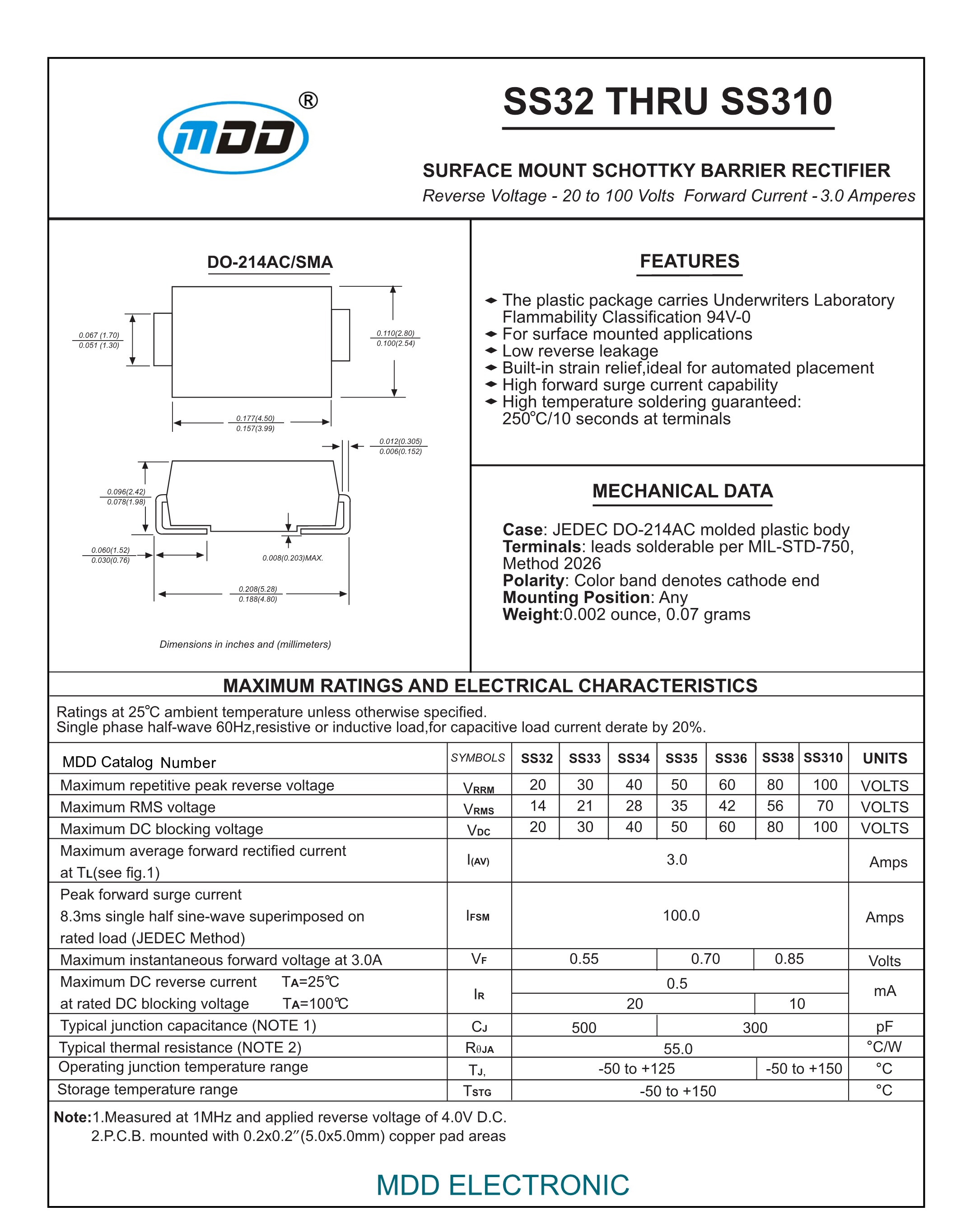 Оригинальный подлинный SS38 SMA (DO-214AC) 80V/3A патч Schottky Diodes 10