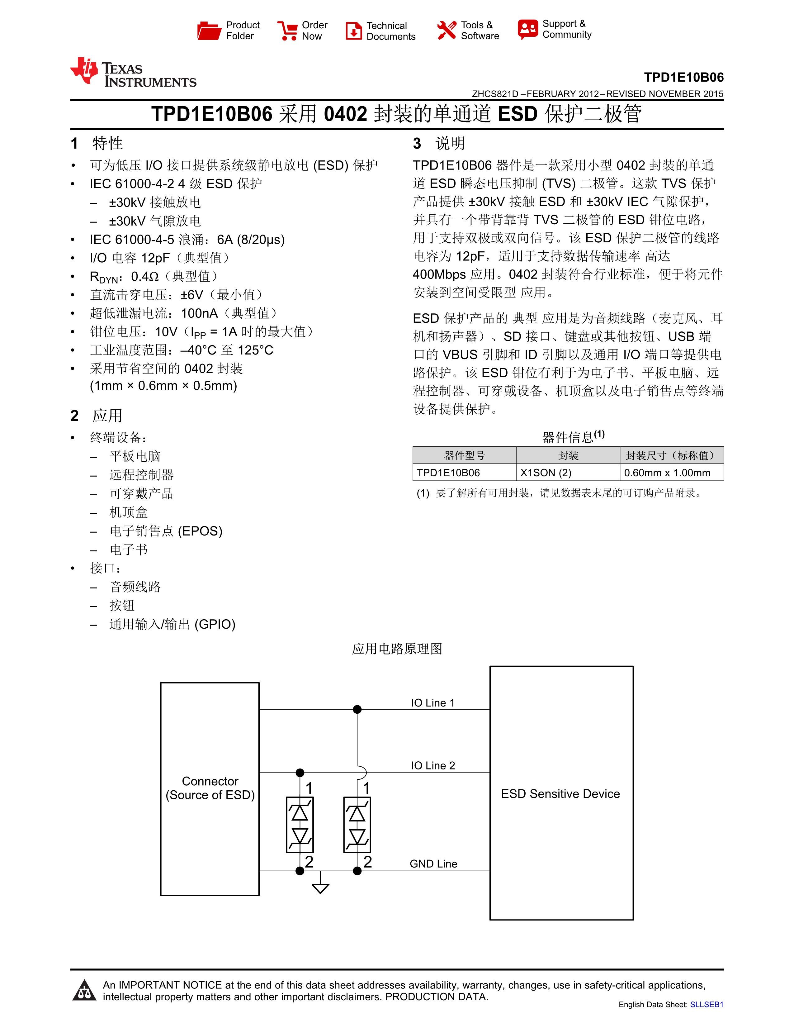 [ 资料链接:][http://www.ti.com/product/TPD1E10B06?keyMatch=TPD1E10B06DPYR]&tisearch=Search-EN-Everything