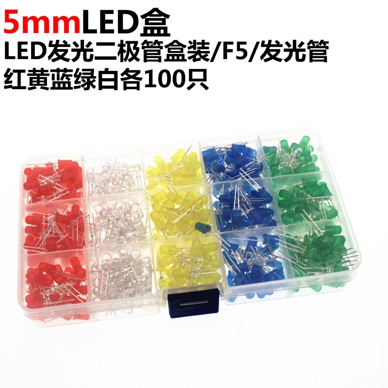 F5 5 мм светодиодный светодиод -эмидированный диодная коробка светящаяся труба 500 за цвет 100 за цвет, 500pcs