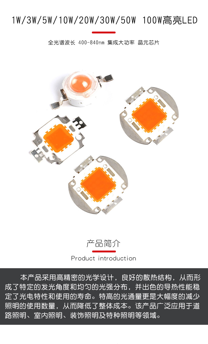 1/3/5/10/20/30/50/100/100 Вт Полная длина волны 400-840 нм интегрированные мощные светодиодные лампы бусины