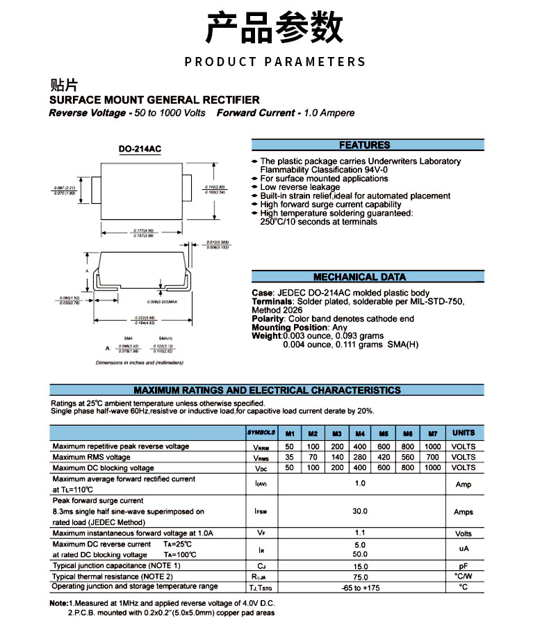 - 1N4001 Patch SMA Silk Print M1 (50)