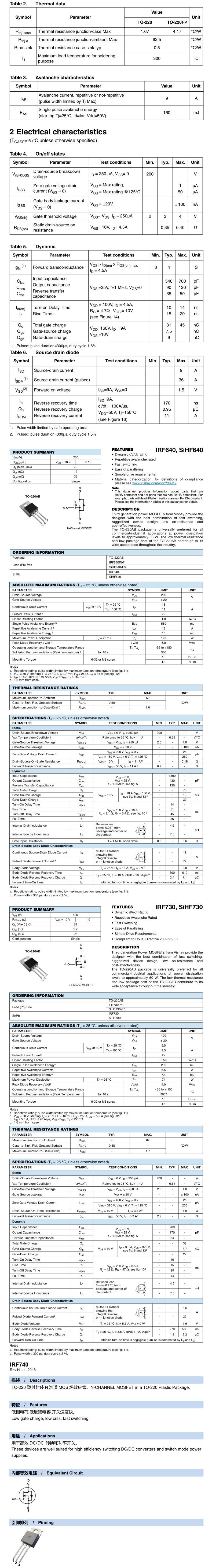 | Цвет: | IRF520N 100V 9.7A TO-220, IRF530N 100V 17A TO-220, IRF540 100V 33A TO-220, IRF630N 220V 9.3A TO-220, IRF640 200V 18A TO-220, IRF730 400V 5.5A TO-220, IRF740PBF 400V 10A TO-220, IRF830 500V 4.7A TO-220, IRF840 500V 8A TO-220, IRFZ34N 60V 30A TO-220 |
