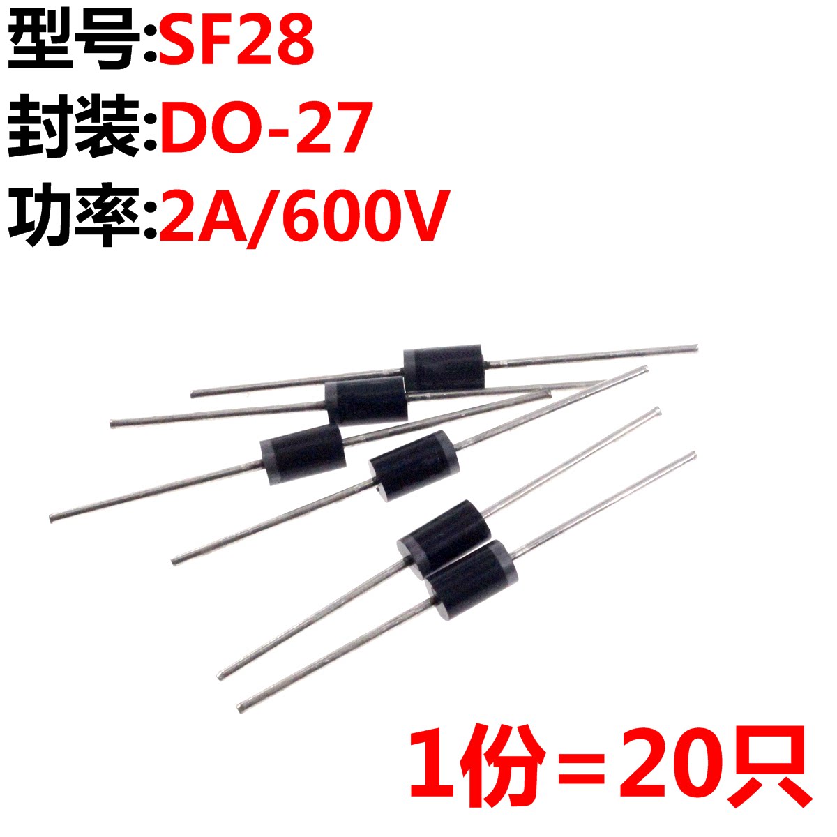 20 SF28 Прямая вставка 2A/600V Диод быстрого восстановления DO-27 Упаковка