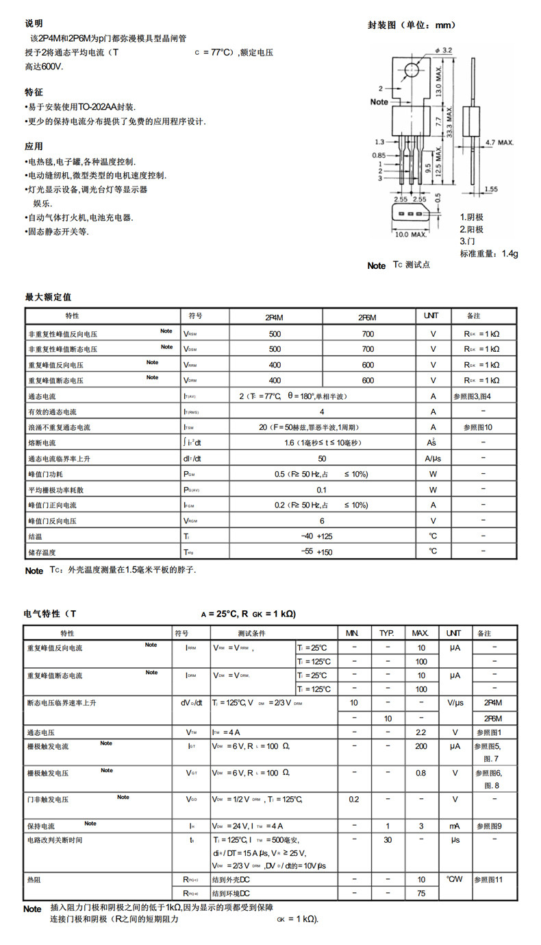 - 2A500V Direct INSERT TO-202