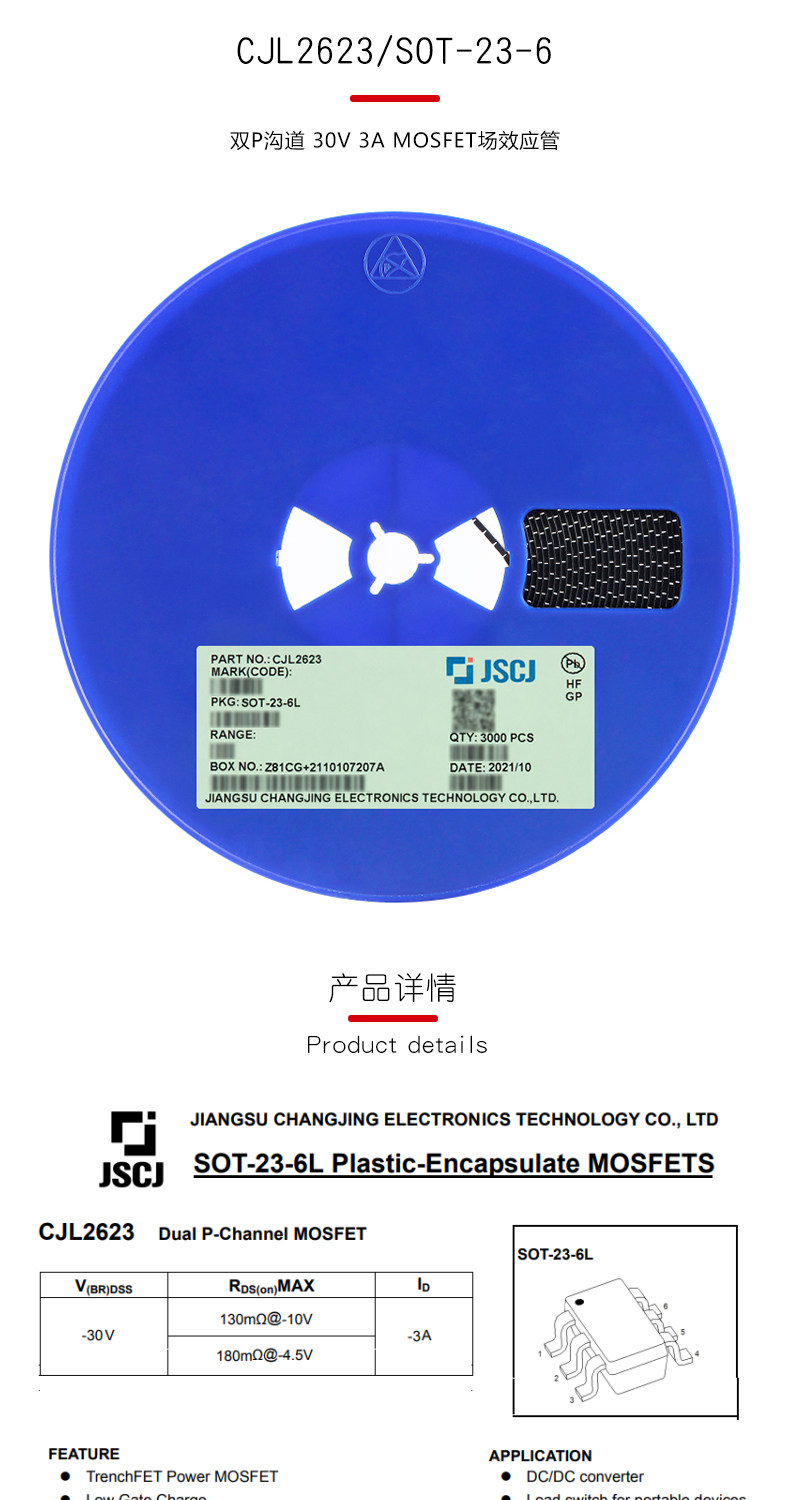 Оригинальный CJL2623 2623 SOT-23-6 двойной P-канальный 30 В 3A полевой МОП-транзистор 5 шт.