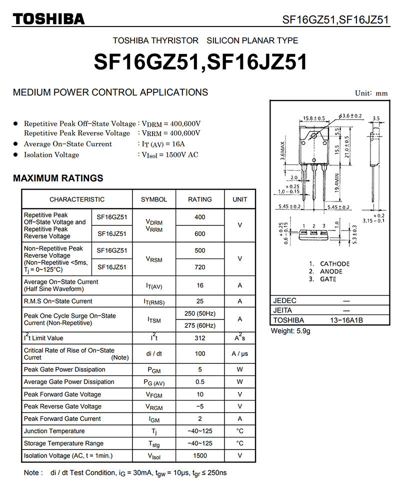 Spot f16jz51 M16JZ51 Односторонний тиристор до 3PF 600V 16A