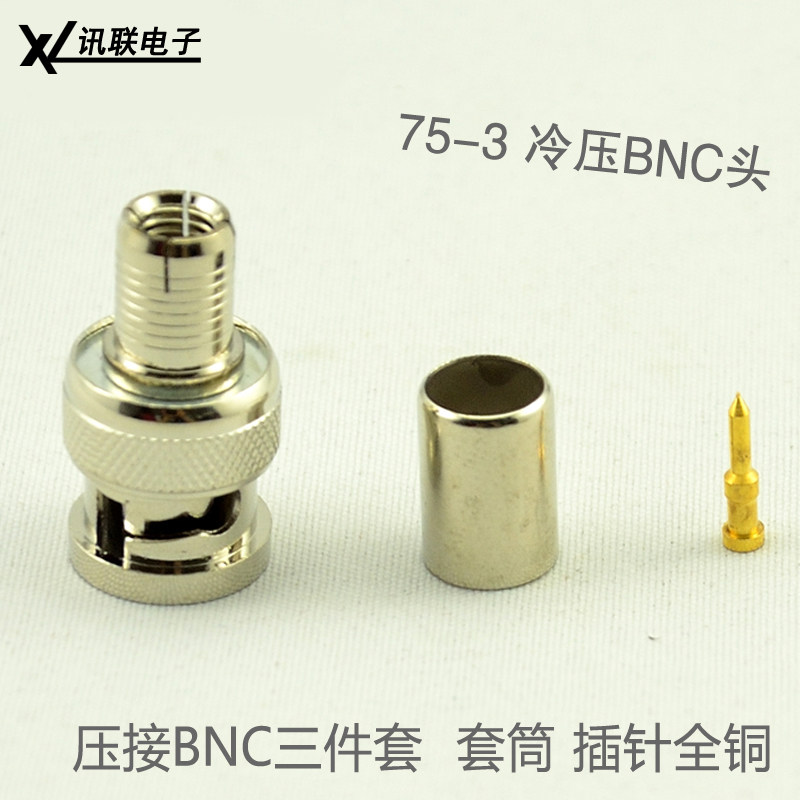 [特别注意冷压的BNC一种规格的接头只适合一种规格的线缆,不能通用 比如-5的接头只能配75-3的线缆,而且只有单股的同轴电缆才适合用冷压。]