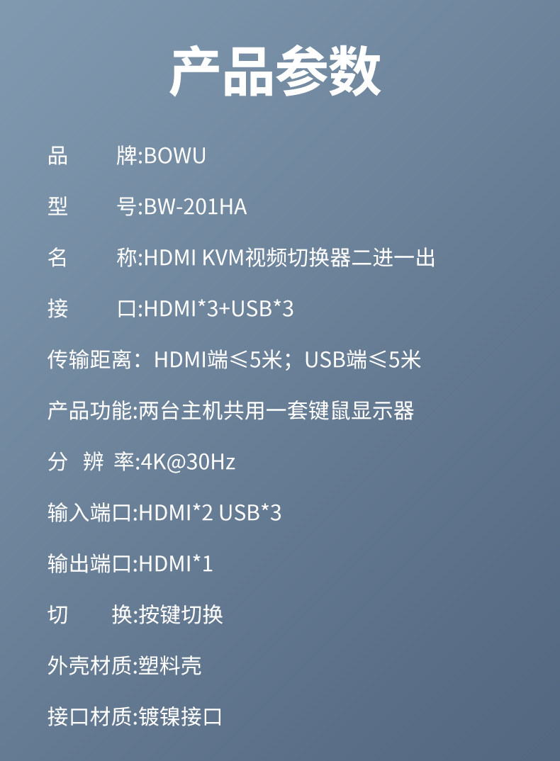 BOWU KVM Switching Synchronizer Two -In -One HDMI Обмен устройством Два хоста обмениваются одной печатью мыши.
