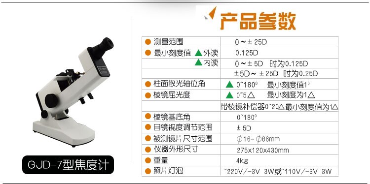 GJD-7Детектор линзы типа состоит в том, чтобы измерить линзу, сгибание зеркала столбца, цилиндрическую ось, призму и базовую линию призмы, а также примечания печати для оптического центра линзы, оси столба и зеркальное основание.