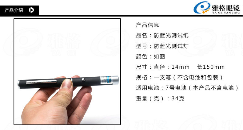 Анти -блюд легкая тест -пера синяя линза Теста