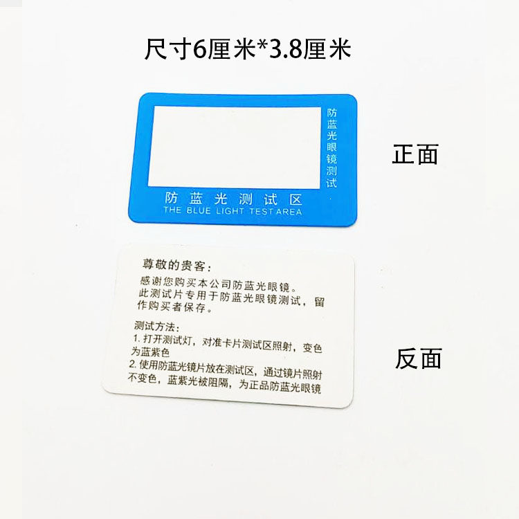 Anti -Blu -Ray испытательная карта Оптовая бумажная бумага против легких очков.