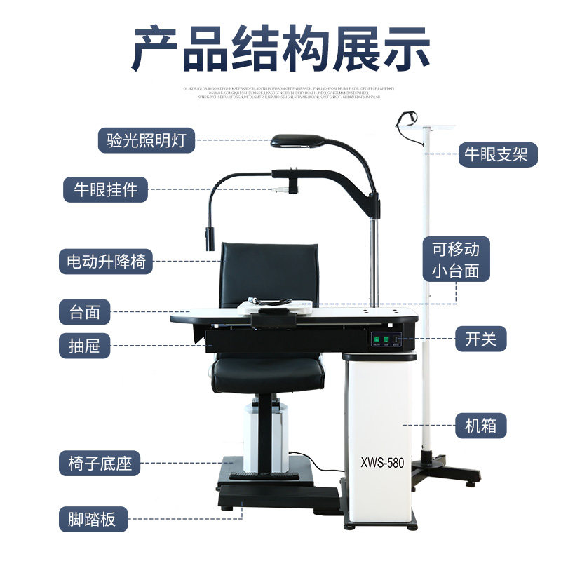 Комплексная оптометрия Комбинирование рабочего стола 580 Электрическое подъемное кресло Электрическое кресло Оптометрия литерат подъемной таблицы