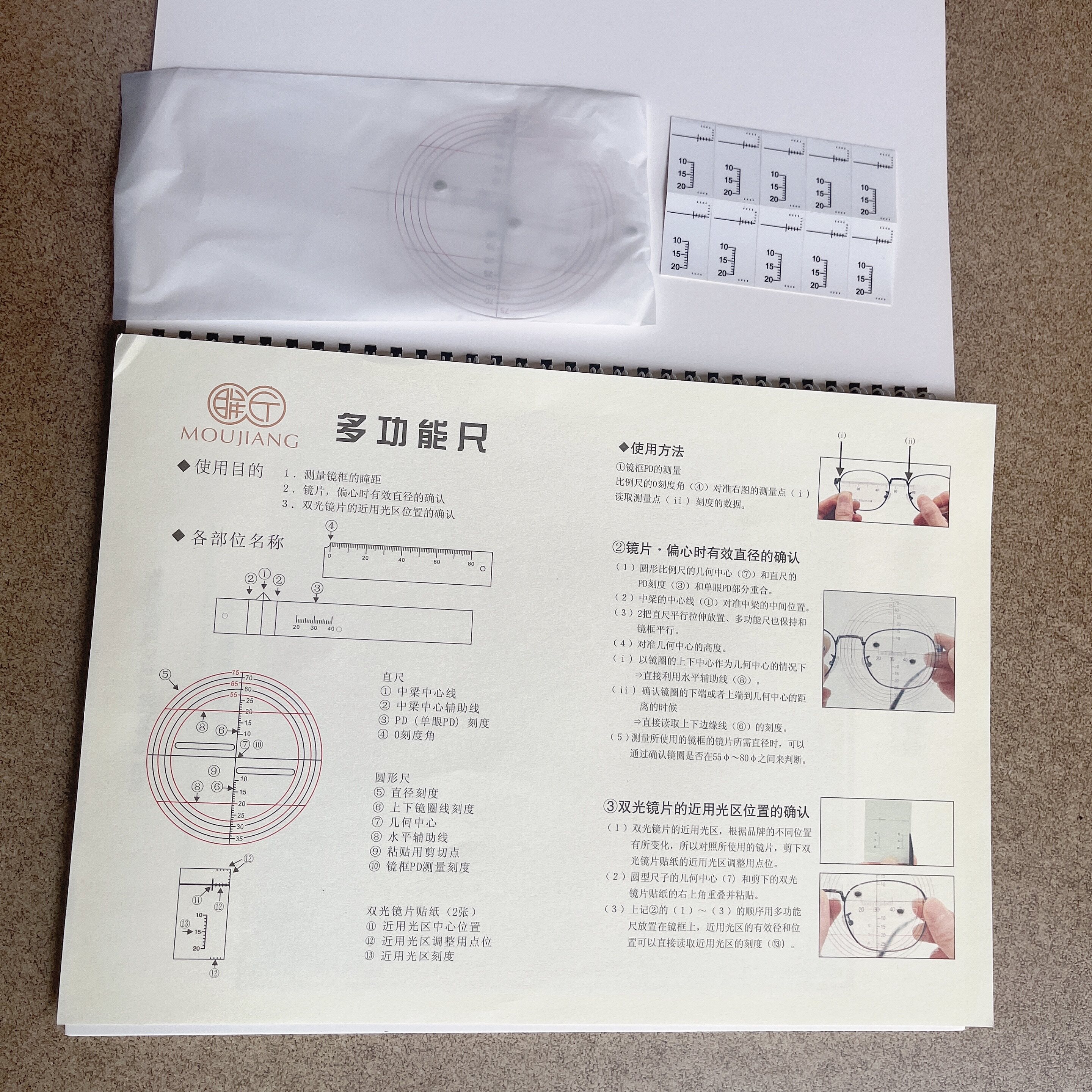 Очки, универсальная линейка, объектив