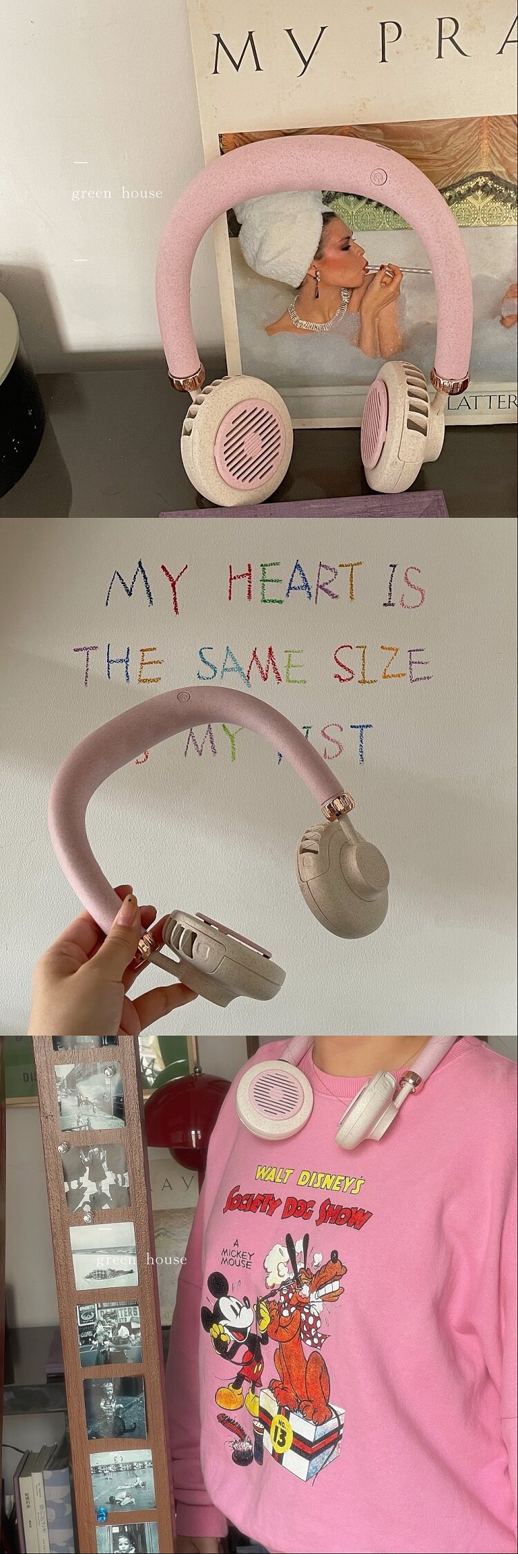 Зеленый дом*Южная Корея INS RETRO VINGING NECE USB Зарядка ленивый маленький вентилятор без листьев без карточных волос