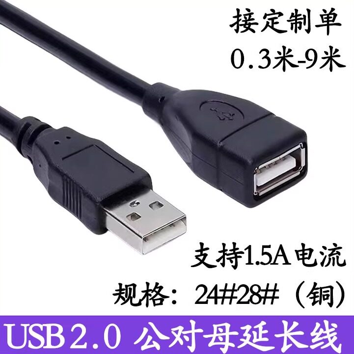 Медный большой удлинитель, USB-флеш-накопитель, мышка, длинная клавиатура, 5A