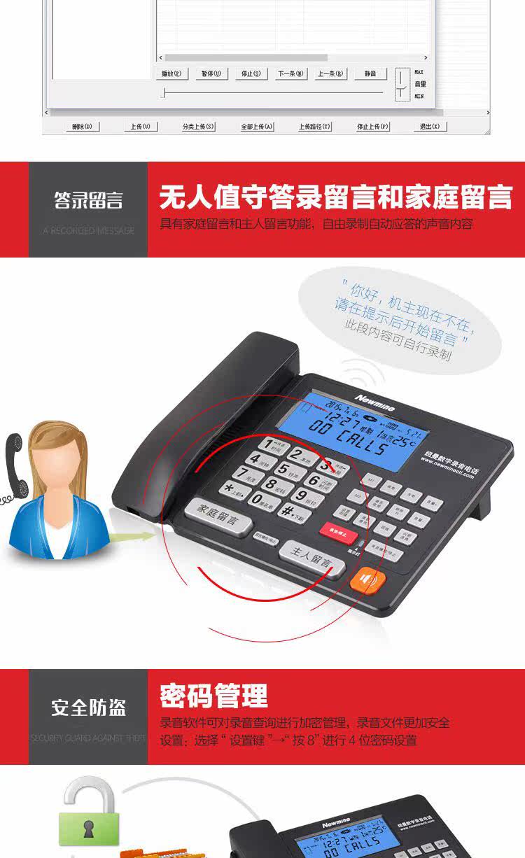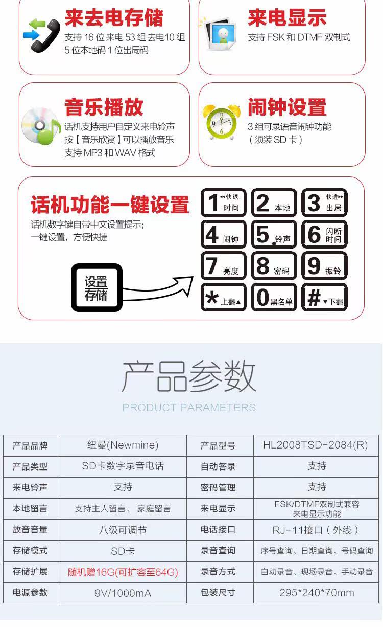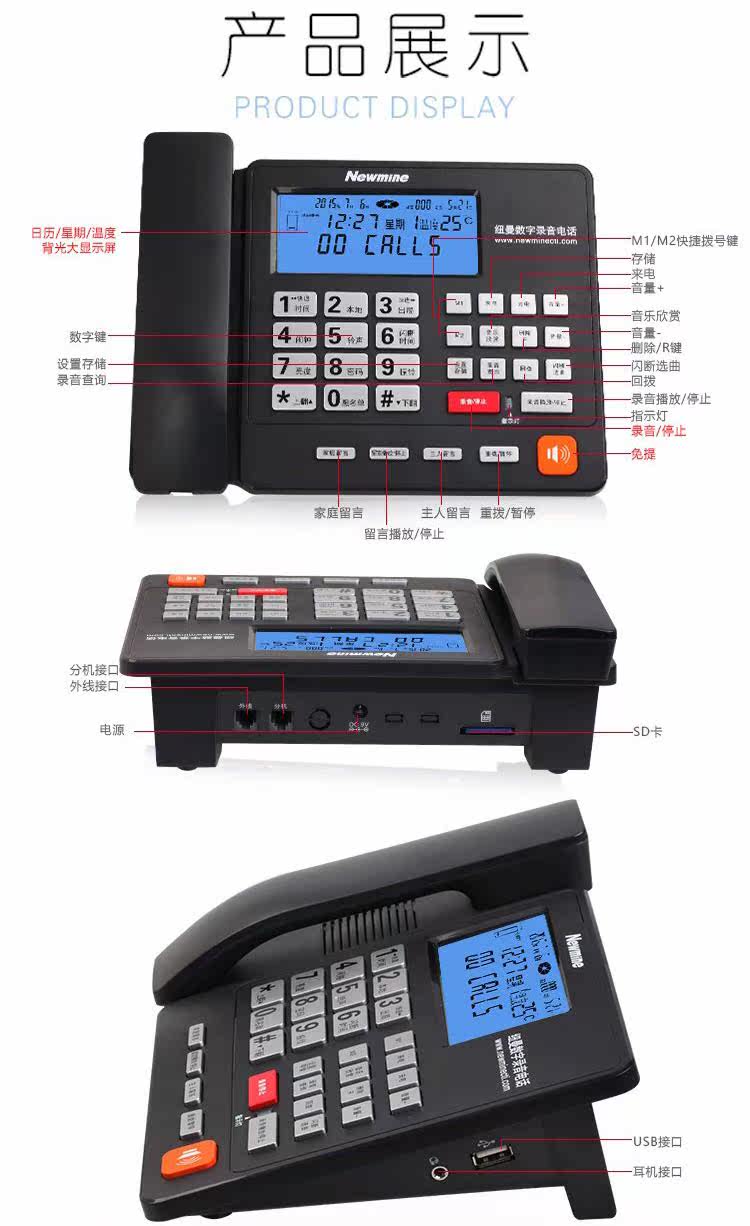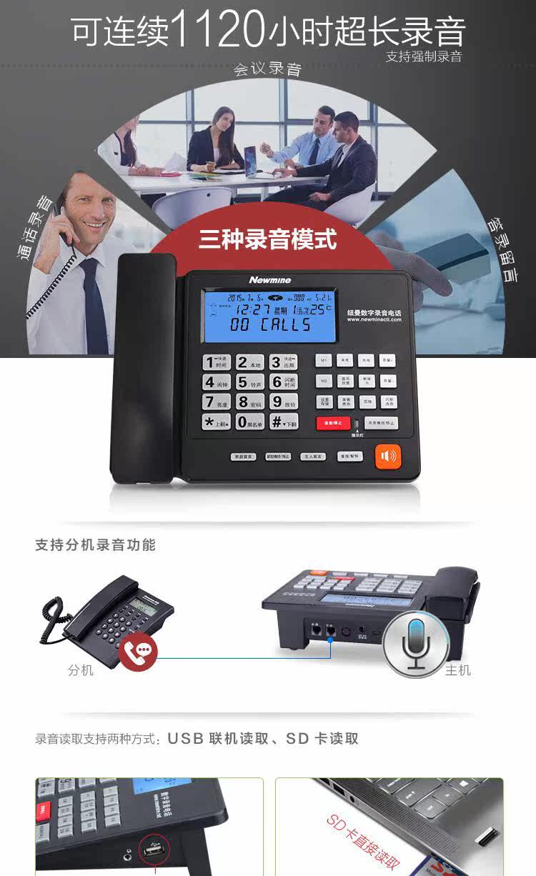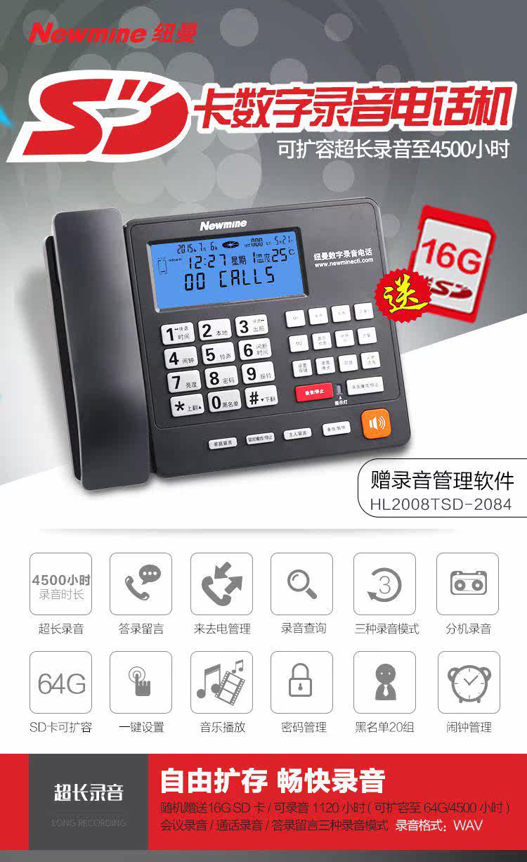 Newman HL2007TSD-2084 (R) Записывание телефонного бизнеса Домашняя машина для отправки карты SD16G