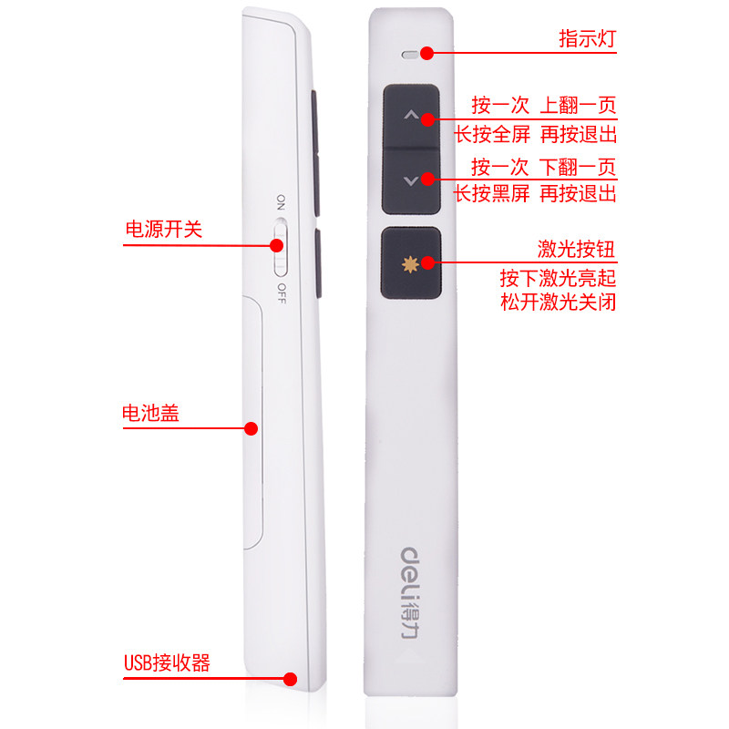 Deli Pages PPT Дистанционное управление ручкой Demancation Demonation Propection Pen Красная светло -зеленая свет Электронная ручка Учитель Учитель курс