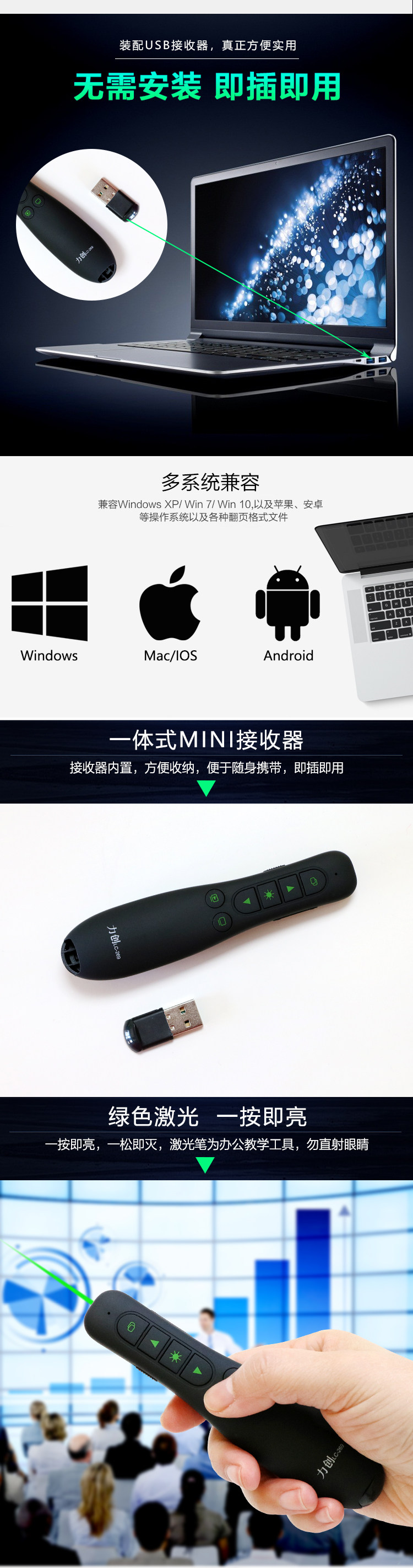 LC-269 Green Light Page Ppt Пульт управления перо проектора ЖК-экран экрана экрана светодиодный экран
