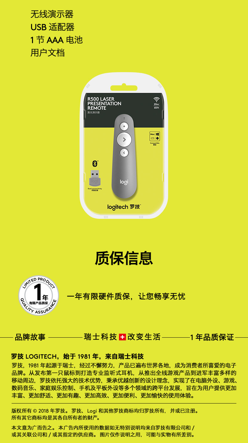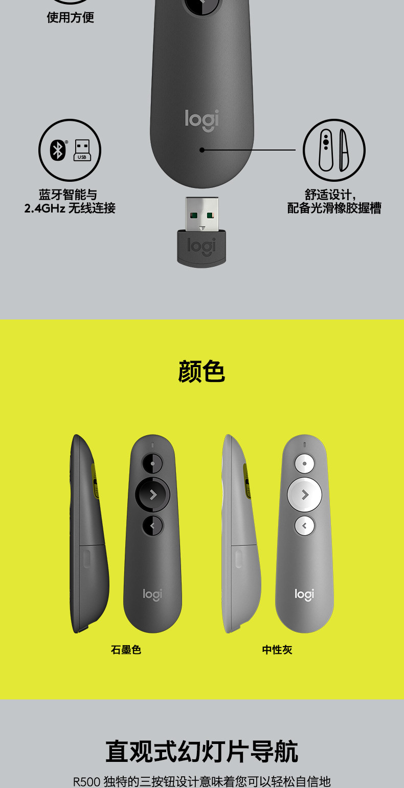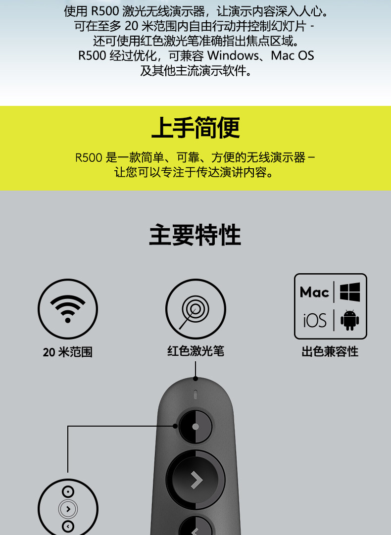[Официальный флагманский магазин] Logitech R500 Беспроводная лазерная ручка Страницы PPT Дистанционное управление Учитель использует электронный демонстратор мультимедиа с мультимедийным слайд -шоу USB