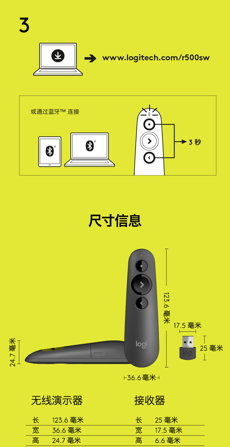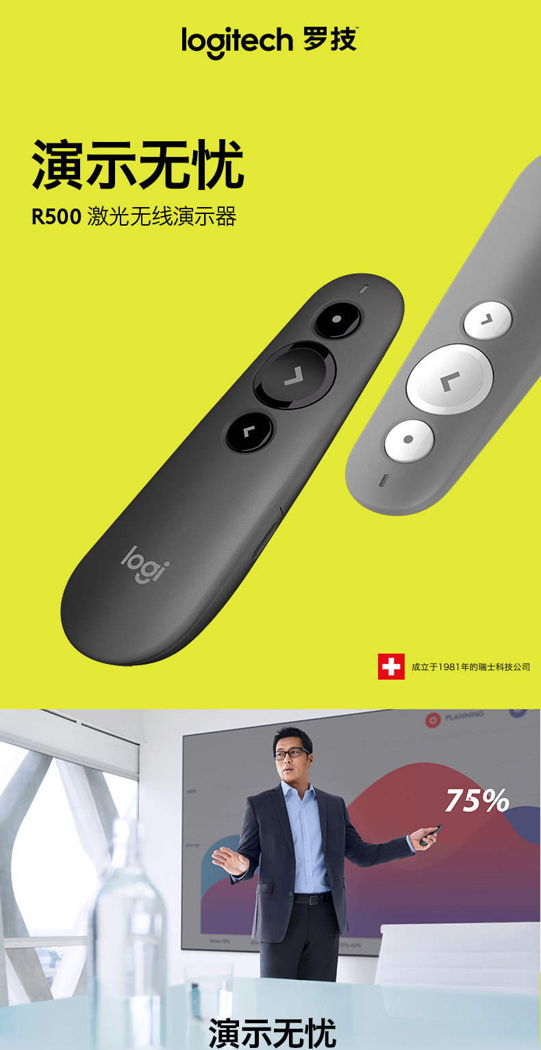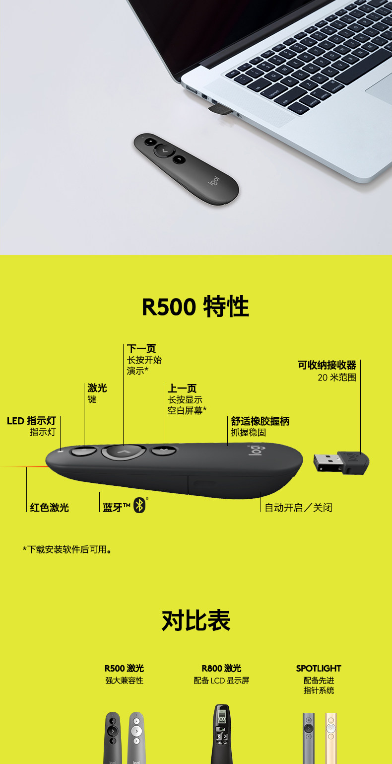 [Официальный флагманский магазин] Logitech R500 Беспроводная лазерная ручка Страницы PPT Дистанционное управление Учитель использует электронный демонстратор мультимедиа с мультимедийным слайд -шоу USB