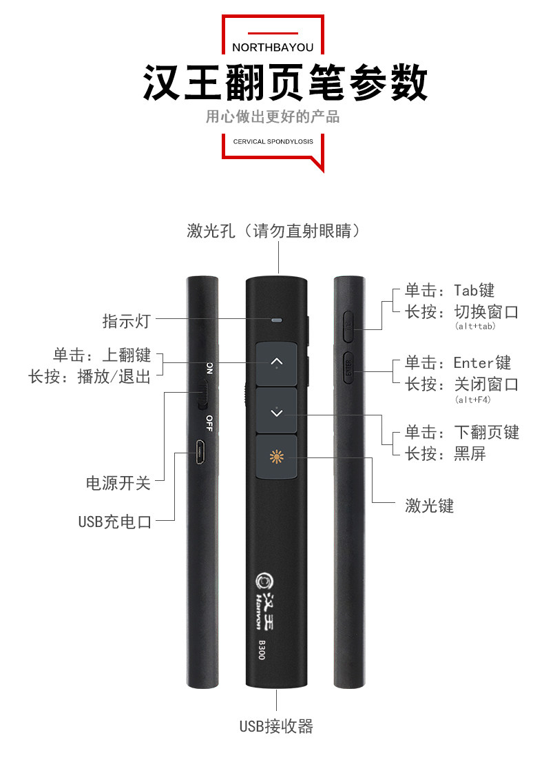 Hanwang B300ppt страницы зарядки литий -батарея лазерная проектор демонстрация ручка пульт дистанционного управления ручкой электронная ручка кнут