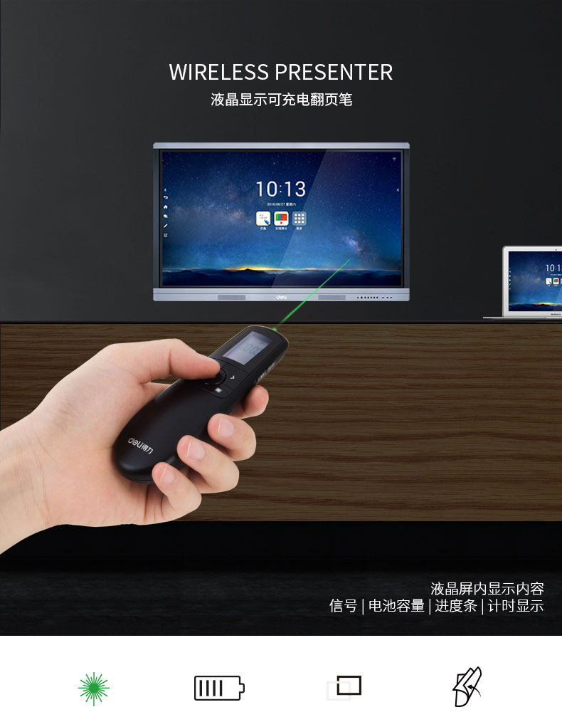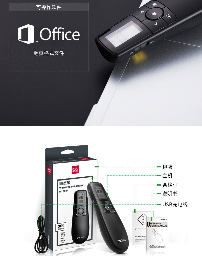 Deli 2804 Учитель использует страницу, поворачивая ручки PPT PPT Дистанционное управление ручкой, зарядка