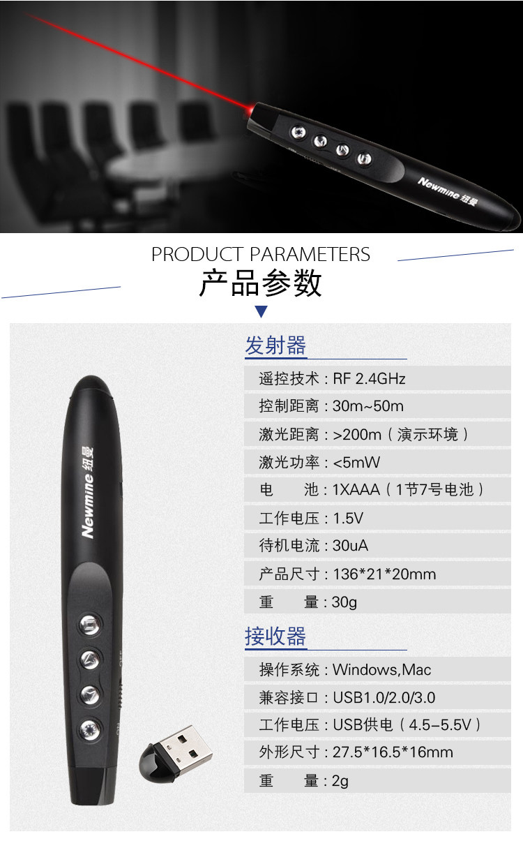 Newman J21 Red Light Laser Pen Pen Page Page Turning Pen Учитель Electronic Whip поддерживает Hyperlink Black