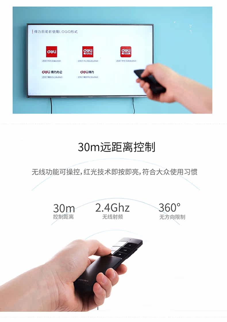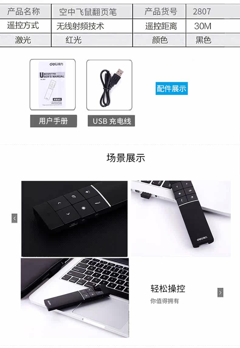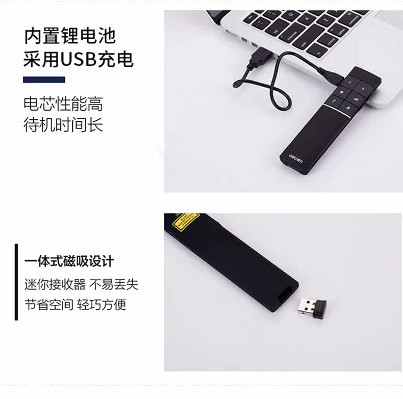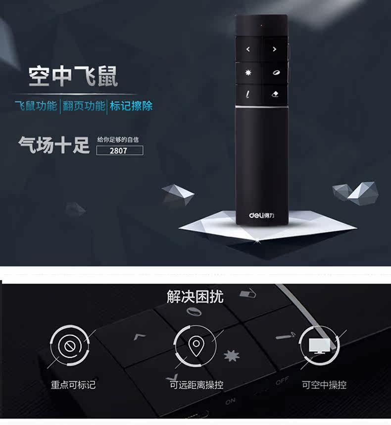 Deli 2807 Wireless Laser Sky Flying Flying Mouse Ppt Remote Control Persiverer USB -заряд