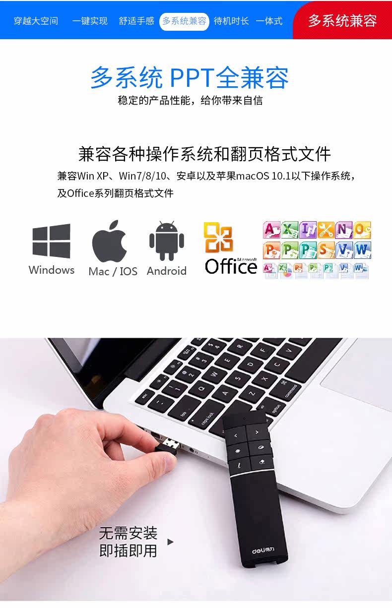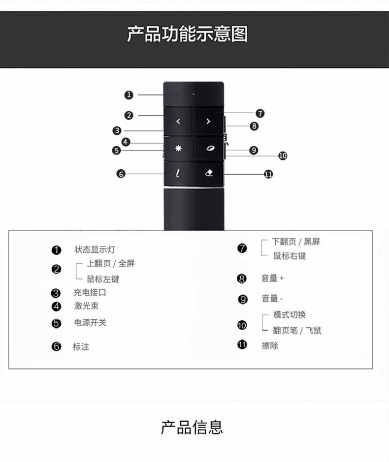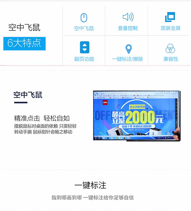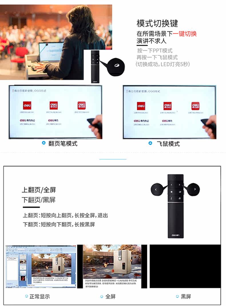 Deli 2807 Wireless Laser Sky Flying Flying Mouse Ppt Remote Control Persiverer USB -заряд