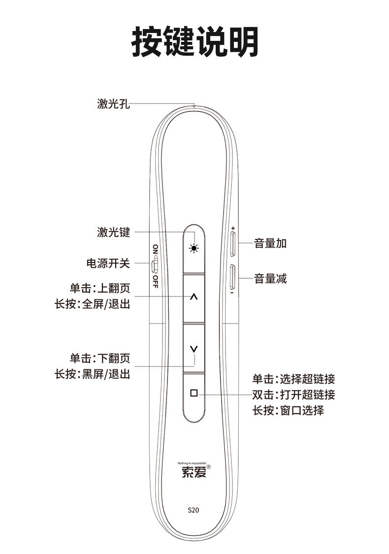 索爱 S-20 Многофункциональные лазерные страницы позиционируют взимание PPT Demote Control Pen Учитель Учитель использует речи в классе