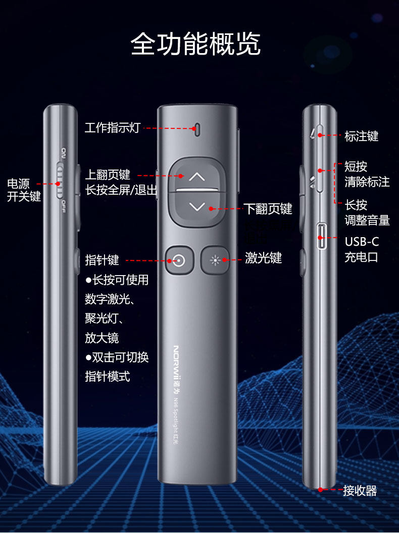 Nuo -это цифровой двойной лазер N96, подходящий для учителя Ppt Remote Control Pen с многофункциональным проектом