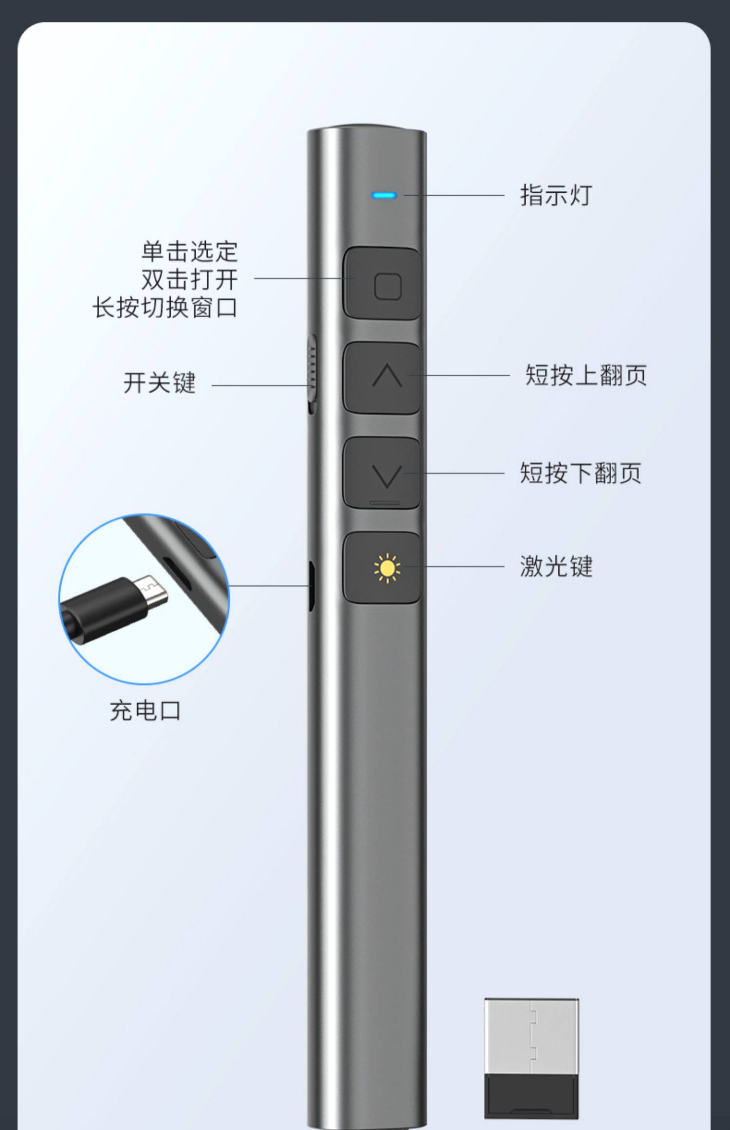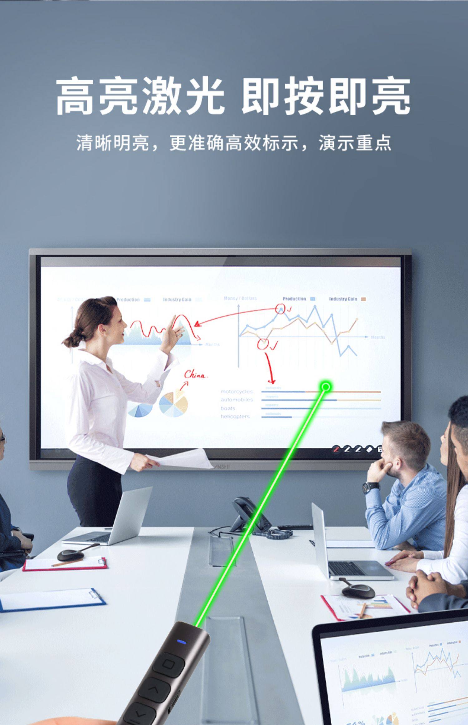 PPT Performance Pen Multimedia Computer Weffering, применимый для многофункции для Hero Electronic White Panel Class Class Class Class Class Slide Conference Projector Зарядка зеленый свет