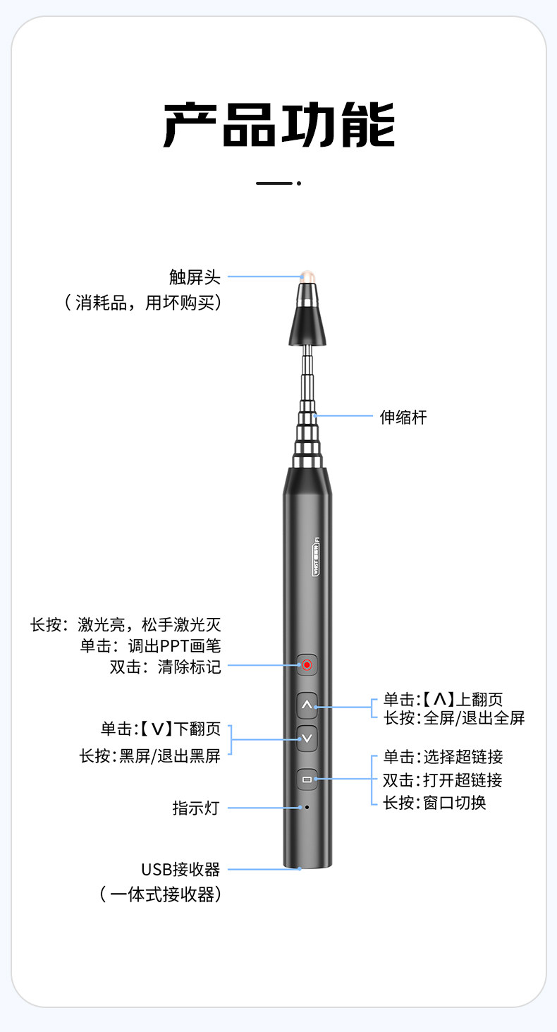 Учистка F1 Turning Pen Учитель может написать мультимедийные страницы с мультимедийными страницами с многофункциональным телескопическим указателем для применения HOWO Whotboard Ppt Ppt Ppt