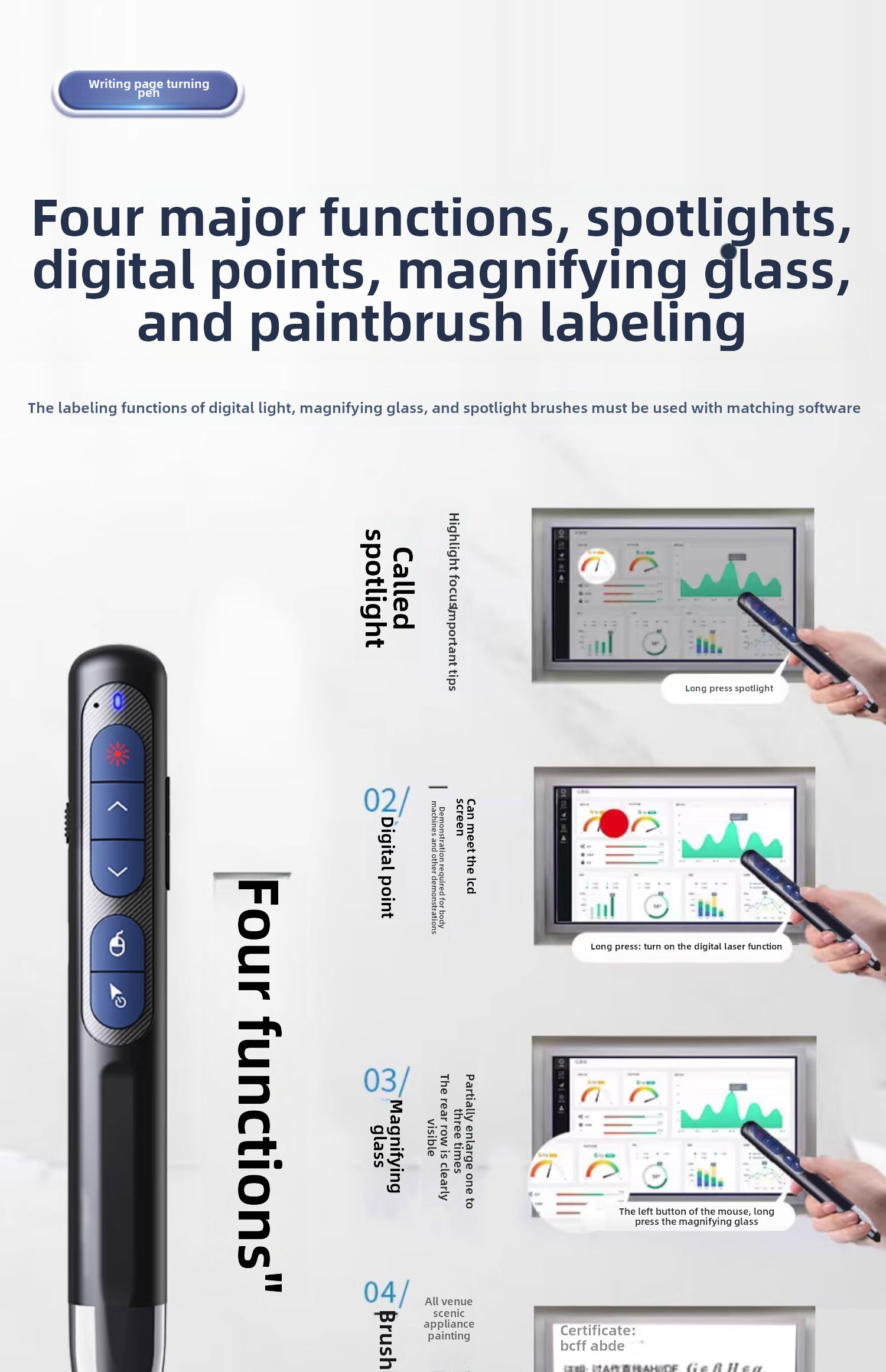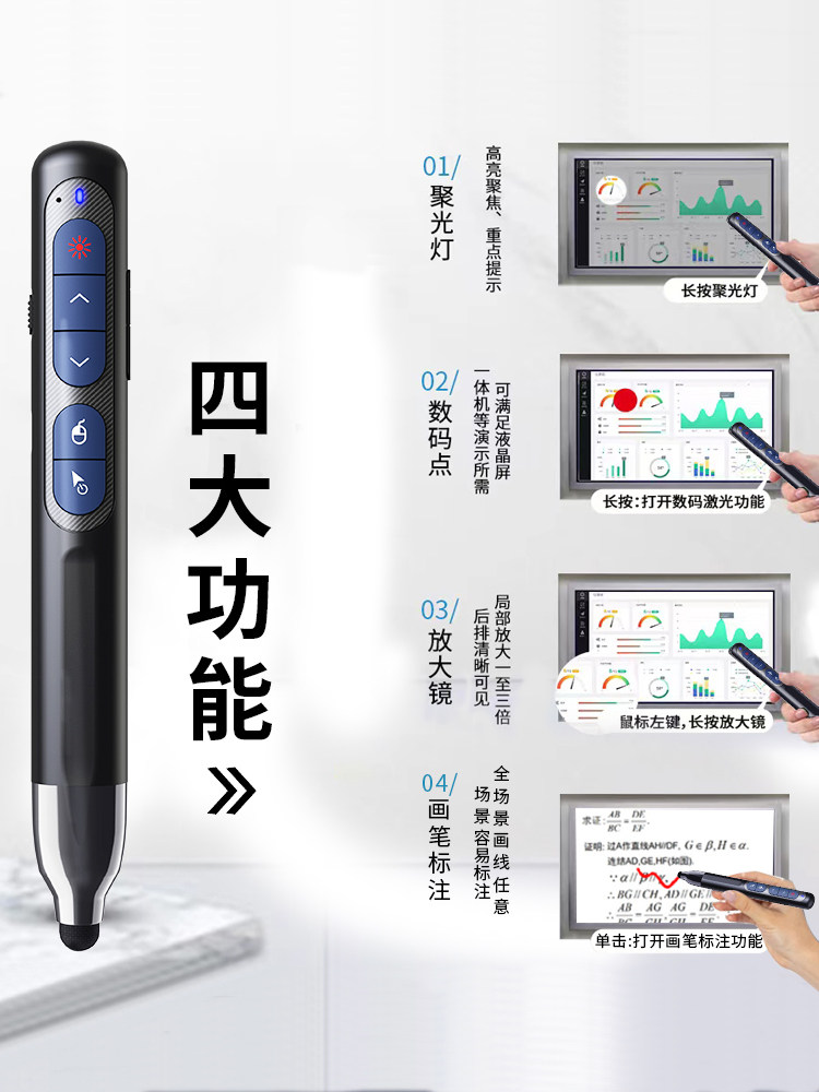 Ручка с поворотом страниц Лазерная Ppt Ручка с дистанционным управлением Сенсорный проектор для письма Перезаряжаемый Многофункциональный голосовой Красная точка Инфракрасное обучение Мультимедиа Цифровой учитель Подходит для лекций по слайдам Seewo